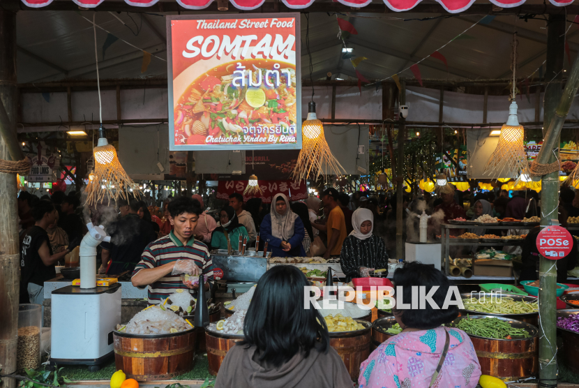 REPUBLIKA.CO.ID, CILEGON -- Pengunjung memesan sajian makanan saat Roadshow Kuliner Viral Indonesia di Kota Cilegon, Banten, Jumat (30/1/2026).