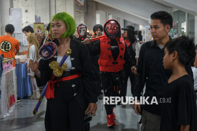 Pengunjung mengenakan kostum karakter anime dalam ajang Cosplay Expo 2025 di Gelora Bung Karno (GBK), Senayan, Jakarta, Sabtu (18/10/2025). Cosplay Expo 2025 menjadi salah satu ajang budaya pop paling dinantikan tahun ini. Acara yang berlangsung selama dua hari tersebut menampilkan beragam pertunjukan, mulai dari penampilan cosplayer ternama hingga aksi panggung idol performance. Kegiatan ini tidak hanya menjadi hiburan, tetapi juga menjadi wadah apresiasi terhadap kreativitas dan semangat komunitas budaya pop yang terus berkembang. (FOTO : Republika/Prayogi)