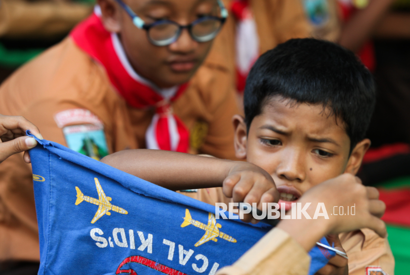 REPUBLIKA.CO.ID, SURABAYA -- Sejumlah pelajar belajar membuat tas dari kaos bekas saat lokakarya di SD Negeri Ketintang I, Surabaya, Jawa Timur, Jumat (30/1/2026).