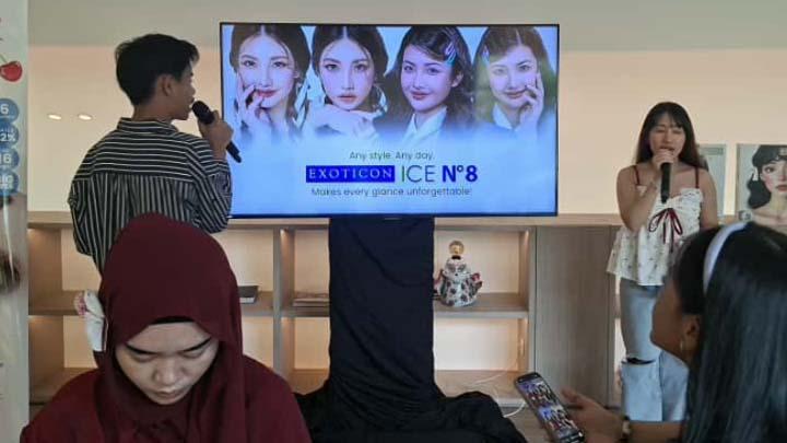 Nanda selaku brand manager Exoticon sedang menjelaskan varian terbaru dari Exoticon yaitu Exoticon Ice N°8 di Jakarta, Sabtu, 15 Desember 2025/Foto: Tsabitha