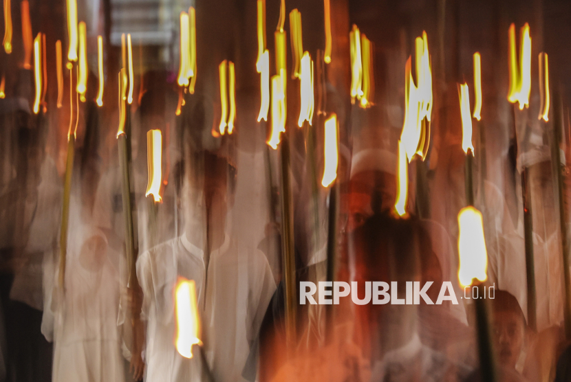 REPUBLIKA.CO.ID, TERNATE -- Sejumlah warga mengikuti Kololi Gam pawai obor di Ternate, Maluku Utara, Selasa (17/3/2026).