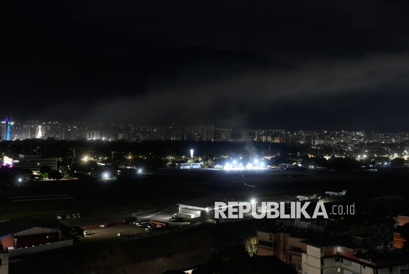 REPUBLIKA.CO.ID, CARACAS -- Kepulan asap terlihat di bandara La Carlota setelah terjadinya ledakan di Caracas, Venezuela, Sabtu, (3/1/2026).