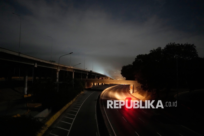Pejalan kaki berlari setelah terdengar ledakan di Caracas, Venezuela, Sabtu (3/1/2026). Sejumlah ledakan besar terdengar di ibu kota Venezuela, Caracas, pada Sabtu waktu setempat. (FOTO : AP Photo/Matias Delacroix)