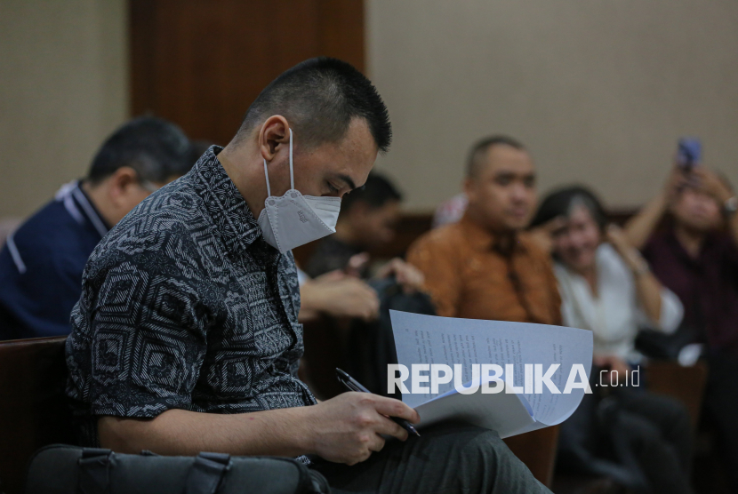 Terdakwa Business Development Manager Trafigura Pte Ltd periode 2019-2021 Martin Haendra Nata mengikuti sidang tuntutan di Pengadilan Tipikor Jakarta, Kamis (23/4/2026). Jaksa penuntut umum (JPU) menuntut tiga terdakwa diantaranya Direktur Utama PT Pertamina Patra Niaga 2021-2023 Alfian Nasution dengan hukuman 14 tahun penjara dan uang pengganti Rp 5 miliar subsider 7 tahun penjara, sementara Direktur Pemasaran dan Niaga Pertamina periode 2012-2014 Hanung Budya Yuktyanta dituntut 8 tahun penjara serta uang pengganti Rp 4 miliar subsider 4 tahun penjara dan Martin Haendra dituntut 13 tahun penjara Rp 5 miliar subsider 7 tahun penjara. Ketiga terdakwa tersebut juga dituntut membayar pidana sebesar Rp 1 miliar, karena jaksa menilai Alfian bersama dua terdakwa lainnya terbukti bersalah melakukan tindak pidana korupsi tata kelola minyak mentah dan produk kilang pada tahun 2018-2023. (FOTO : Republika/Thoudy Badai)