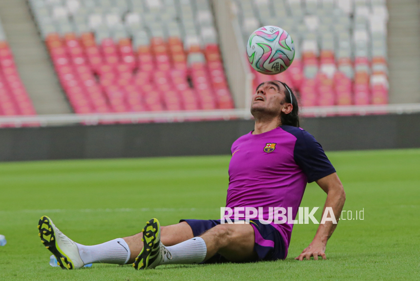 REPUBLIKA.CO.ID, JAKARTA -- Pemain legenda Barcelona mengikuti sesi latihan jelang laga Clash of Legends Jakarta 2026 di Stadion Utama Gelora Bung Karno (SUGBK) Jakarta, Jumat (17/4/2026).