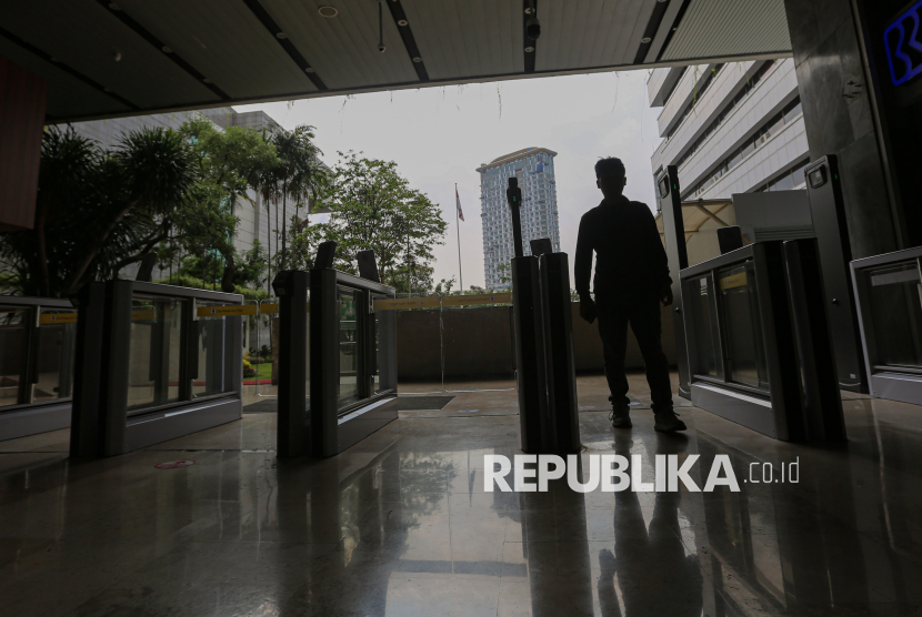 Pengunjung berjalan di gedung Nusantara I yang lengang di Kompleks Parlemen, Senayan, Jakarta, Jumat (17/4/2026). Sejumlah pekerja di DPR RI menjalankan kebijakan pemerintah terkait anjuran Work From Home (WFH) atau bekerja dari rumah sebagai upaya menekan biaya operasional dan meningkatkan efesiensi termasuk penghematan konsumsi energi dan bahan bakar di tengah situasi konflik timur tengah dan dinamika global. Meski demikian, sejumlah layanan publik esensial tetap berjalan optimal sehingga tidak menghambat aktivitas masyarakat. (FOTO : Republika/Thoudy Badai)