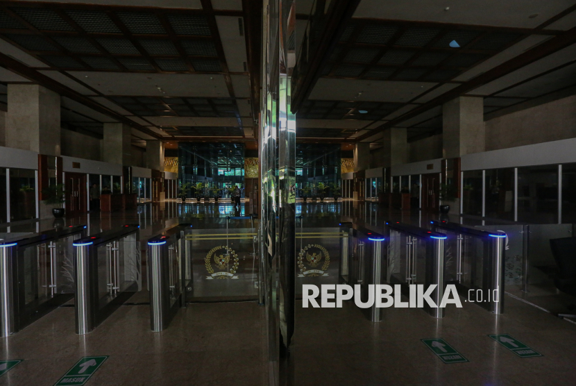 Suasana gedung Nusantara I yang lengang di Kompleks Parlemen, Senayan, Jakarta, Jumat (17/4/2026). Sejumlah pekerja di DPR RI menjalankan kebijakan pemerintah terkait anjuran Work From Home (WFH) atau bekerja dari rumah sebagai upaya menekan biaya operasional dan meningkatkan efesiensi termasuk penghematan konsumsi energi dan bahan bakar di tengah situasi konflik timur tengah dan dinamika global. Meski demikian, sejumlah layanan publik esensial tetap berjalan optimal sehingga tidak menghambat aktivitas masyarakat. (FOTO : Republika/Thoudy Badai)