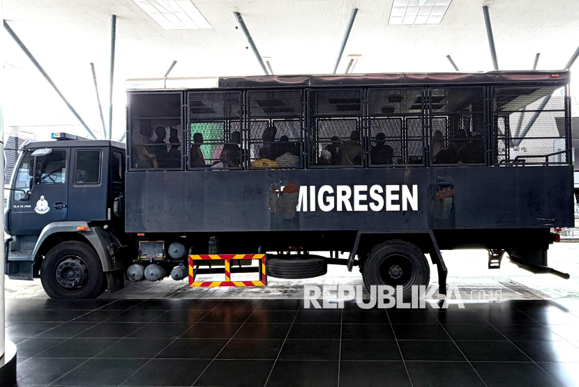 REPUBLIKA.CO.ID, SELANGOR -- Sejumlah pekerja migran Indonesia (PMI) yang akan dipulangkan ke Indonesia berada di dalam truk imigrasi Malaysia saat tiba di Bandara Internasional Kuala Lumpur, Sepang, Selangor, Malaysia, Kamis (23/4/2026).