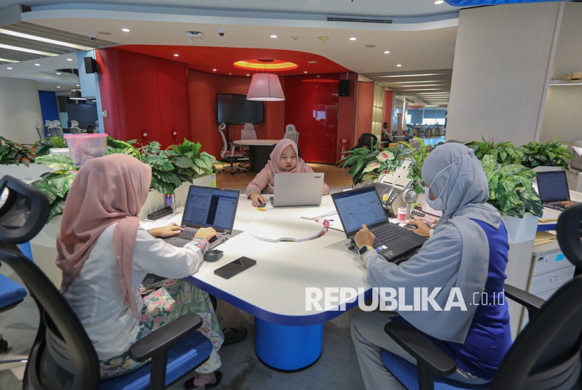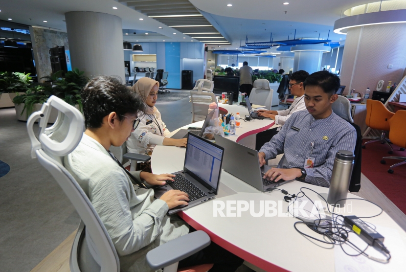 Pegawai Pemprov DKI Jakarta beraktivitas pada hari pertama kerja Tahun Baru 2026 di Balai Kota DKI Jakarta, Jumat (2/1/2026). Pegawai aparatur sipil negara (ASN) dan non-ASN di lingkungan Pemprov DKI Jakarta sudah mulai kembali bekerja pada hari pertama bekerja usai periode libur Natal 2025 dan Tahun Baru 2026. (FOTO : Republika/Thoudy Badai)