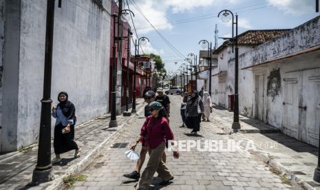 REPUBLIKA.CO.ID, REMBANG -- Pengunjung berjalan di kompleks rumah kuno, Karangturi, Lasem, Rembang, Jawa Tengah, Ahad (19/10/2025).