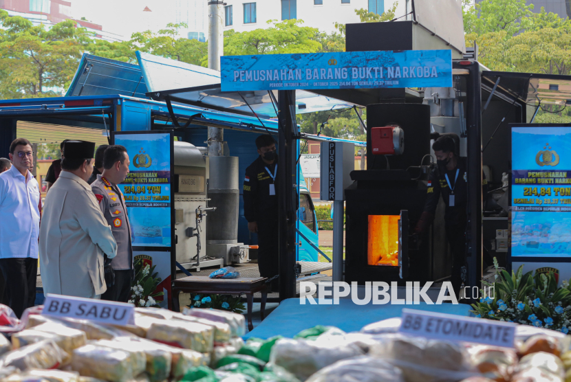 REPUBLIKA.CO.ID, JAKARTA -- Presiden Prabowo Subianto didampingi Kapolri Jenderal Listyo Sigit Prabowo memusnahkan barang bukti narkoba di Lapangan Bhayangkara, Mabes Polri, Jakarta Selatan, Rabu (29/10/2025).