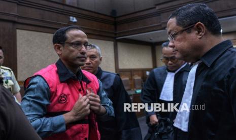 Mantan Menteri Pendidikan, Kebudayaan, Riset dan Teknologi (Mendikbudristek) Nadiem Makarim bersiap menjalani sidang pembacaan dakwaan di Pengadilan Tipikor, Jakarta, Senin (5/1/2026). Nadiem Makarim didakwa melakukan korupsi yang merugikan keuangan negara senilai Rp2,18 triliun terkait kasus dugaan korupsi program digitalisasi pendidikan berupa pengadaan laptop Chromebook dan Chrome Device Management (CDM) di lingkungan Kemendikbudristek pada tahun 2019–2022. (FOTO : Republika/Prayogi)