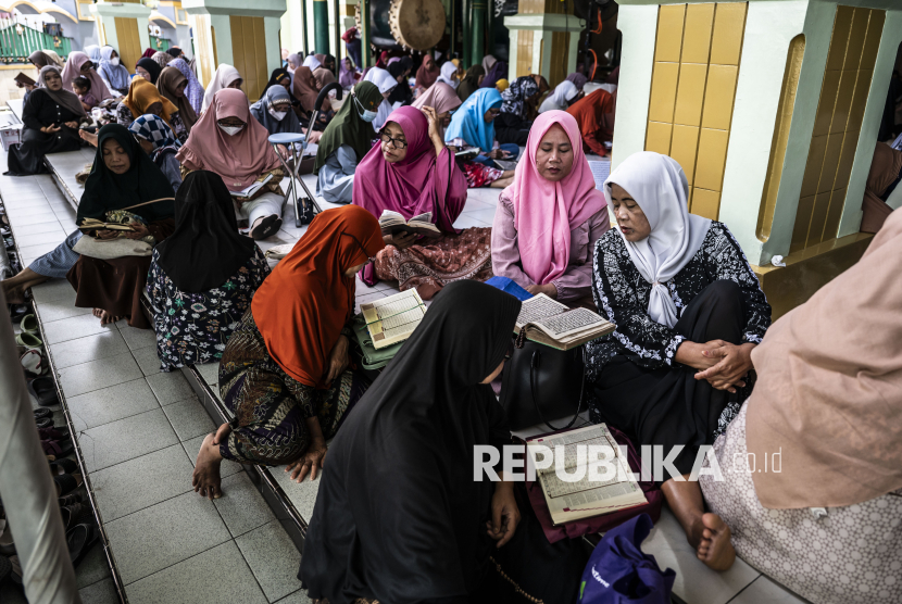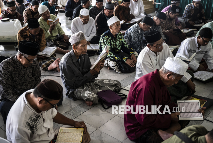 REPUBLIKA.CO.ID, SEMARANG -- Warga membaca Alquran saat mengikuti semaan Alquran atau pengajian tafsir Alquran di Masjid Agung Kauman Semarang, Jawa Tengah, Ahad (1/3/2026).