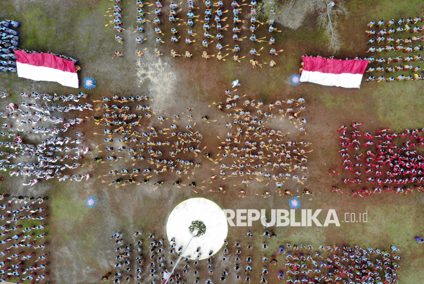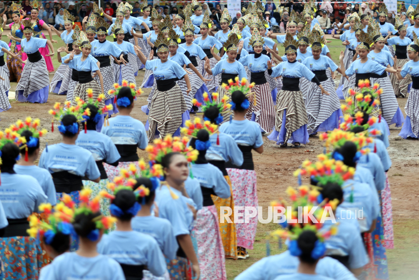 REPUBLIKA.CO.ID, DEPOK -- Peserta menampilkan tarian nusantara dalam pemecahan rekor Museum Rekor Indonesia (MURI) peserta penari terbanyak dari Sanggar Tari Ayodya Pala di Depok, Jawa Barat, Sabtu (25/10/2025).