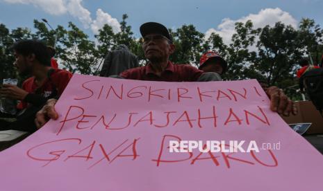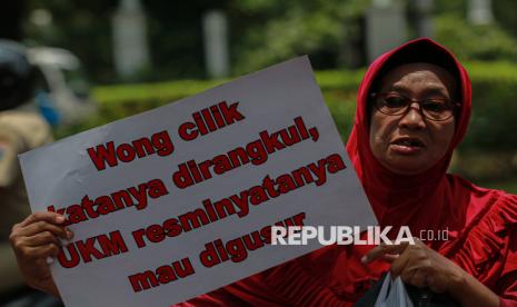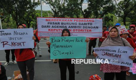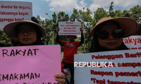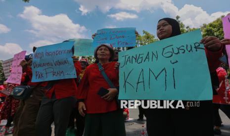 Sejumlah massa aksi juga membawa poster berisi kritikan terhadap kebijakan relokasi yang dinilai merugikan para pedagang.