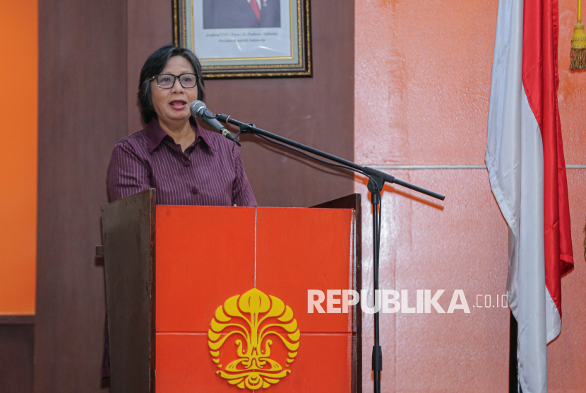 Dekan FISIP UI Evi Fitriani menyampaikan sambutan dalam acara Out Loud, Talkshow and Healing Experiences di Aula FISIP UI, Depok, Jawa Barat, Kamis (26/2/2026). Republika bersama Badan Konseling Mahasiswa (BKM) FISIP UI menggelar talkhsow terkait mental health dengan tema Grow Through What You Go Through yang diharapkan menjadi sarana edukasi sekaligus ruang aman bagi penyintas untuk berbagi kisah dan pengalaman dalam menghadapi kondisi kesehatan mental. (FOTO : Republika/Thoudy Badai)