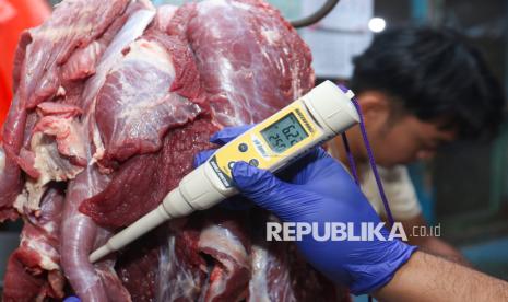 REPUBLIKA.CO.ID, BANYUWANGI -- Petugas Bidang Kesehatan Hewan dan Masyarakat Veteriner (Keswan dan Kesmavet) Dinas Pertanian dan Pangan Banyuwangi mengambil sampel daging sapi yang dijual saat sidak di Pasar Blambangan, Banyuwangi, Jawa Timur, Rabu (11/3/2026).