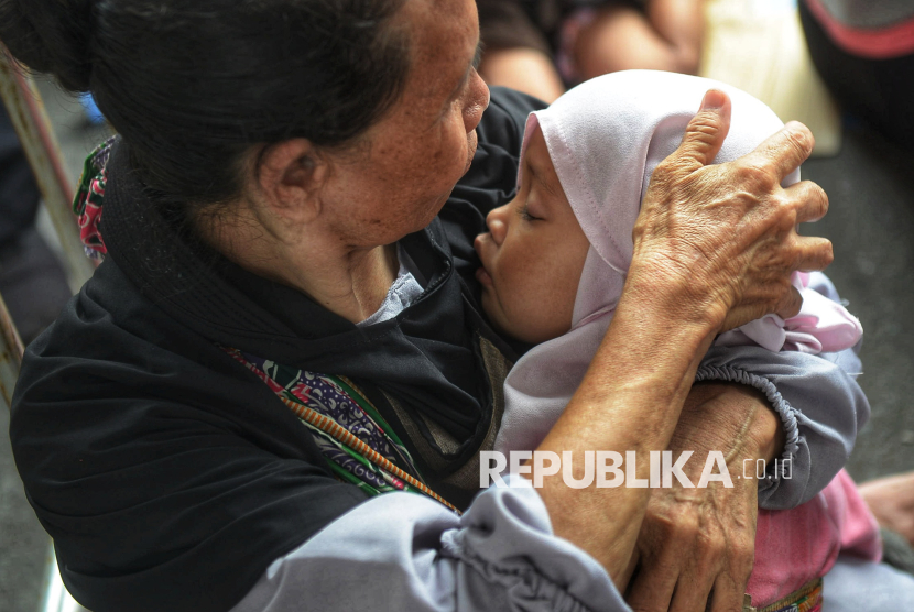 Warga mendapatkan pertolongan medis ketika mengantre untuk menghadiri Gelar Griya atau open house di Istana Kepresidenan, Jakarta, Sabtu (21/3/2026). Presiden Prabowo Subianto menggelar Gelar Griya atau open house Idulfitri 1447 Hijriah di Istana Kepresidenan bagi masyarakat umum. Sekitar 5.000 orang dapat menghadiri gelar griya atau open house tersebut yang berlangsung sejak siang hingga sore hari. (FOTO : Republika/Prayogi)