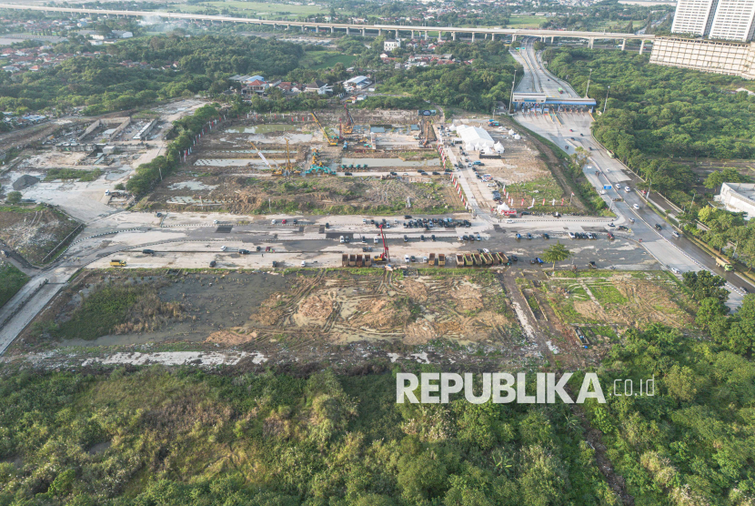 REPUBLIKA.CO.ID, CIKARANG -- Suasana proyek pengembangan hunian Masyarakat Berpenghasilan Rendah (MBR) di Cikarang, Jawa Barat, Ahad (8/3/2026).