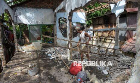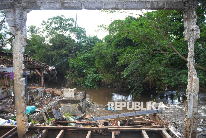 Suasana kondisi rumah warga yang dibongkar akibat terkena pembebasan lahan untuk normalisasi Kali Ciliwung di kawasan Taman Harapan, Cawang, Jakarta, Rabu (4/2/2026). Pembebasan lahan untuk normalisasi kali Ciliwung ini merupakan bagian dari upaya serius Pemerintah Provinsi DKI Jakarta dalam mengatasi banjir. Program normalisasi Kali Ciliwung yang sempat terhenti sejak 2017 tersebut kembali dilanjutkan sebagai langkah pengendalian banjir jangka menengah di Ibu Kota dan ditargetkan mampu mengurangi potensi banjir hingga 40 persen. (FOTO : Republika/Prayogi)